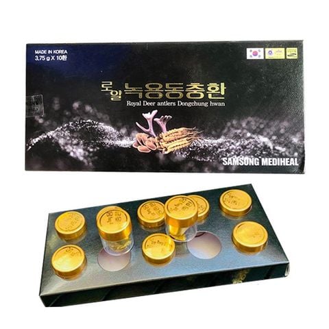 An Cung Ngưu Hoàng Gia Samsung Hàn Quốc hay còn gọi là viên Đông Trùng Hạ Thảo Nhung Hươu Hoàng Gia Nội Địa Samsung Mediheal 10 Viên tại Đạt Food được nhập khẩu chính hãng từ Hàn Quốc, đảm bảo chất lượng tốt, giúp bảo vệ cơ thể, tăng cường sức khỏe và phòng chống bệnh đ.ột qu.ỵ một cách hiệu quả. Sản phẩm được bào chế dưới dạng viên hoàn và được dùng để uống, và được nhiều khách hàng đánh giá cao sau thời gian sử dụng.