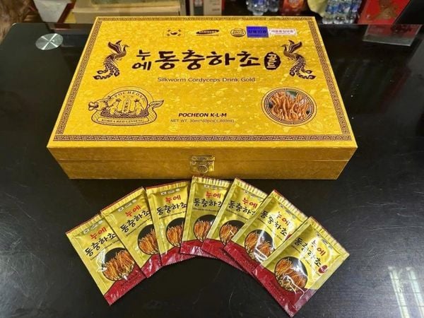 Nước Đông Trùng Hạ Thảo Pocheon Hàn Quốc 60 gói x 30ml hộp gỗ vàng là sản phẩm nước uống được chiết xuất từ đông trùng hạ thảo thiên nhiên, không chỉ có tác dụng giải khát mà nó còn là một loại sản phẩm hỗ trợ phục hồi sức khỏe.