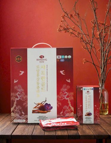 Nước hồng sâm hoàng gia đông trùng saffron gold Hàn Quốc là sản phẩm được sản xuất dưới sự kết hợp tuyệt vời giữa nguyên liệu chính là nhân sâm mọc tự nhiên trên các vùng núi cao của Hàn Quốc và nhụy hoa Nghệ Tây saffron đến từ đất nước Iran, và đông trùng. Trải qua nhiều công đoạn chế biến và phối trộn đã cho ra đời một sản phẩm vô cùng tuyệt diệu để chăm sóc sức khỏe và sắc đẹp cho người sử dụng, được người dân Hàn Quốc và trên thế giới trong đó có Việt Nam tin tưởng và sử dụng hằng ngày. Sản phẩm có thể sử dụng hàng ngày ở bất cứ đâu, rất thuận tiện cho người sử dụng.