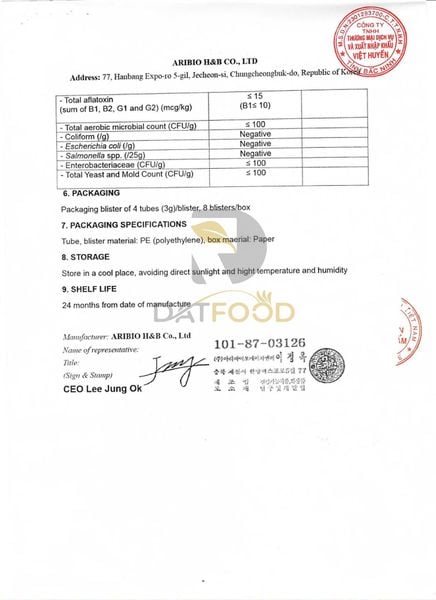 - Đạt Food là đơn vị chuyên phân phối độc quyền các sản phẩm sức khỏe Hàn Quốc tại Tphcm. Tại đây, bạn có thể dễ dàng lựa chọn các sản phẩm Hàn Quốc chính hãng, đều có giấy chứng nhận.