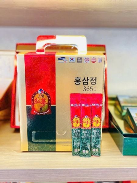 - Thành phần chính: Tinh chất nước hồng sâm Dream 365 Hàn Quốc gồm tinh chất Hồng Sâm 6 năm tuổi, ngải cứu, đương quy, táo tàu, hoàng kỳ, trà xanh...